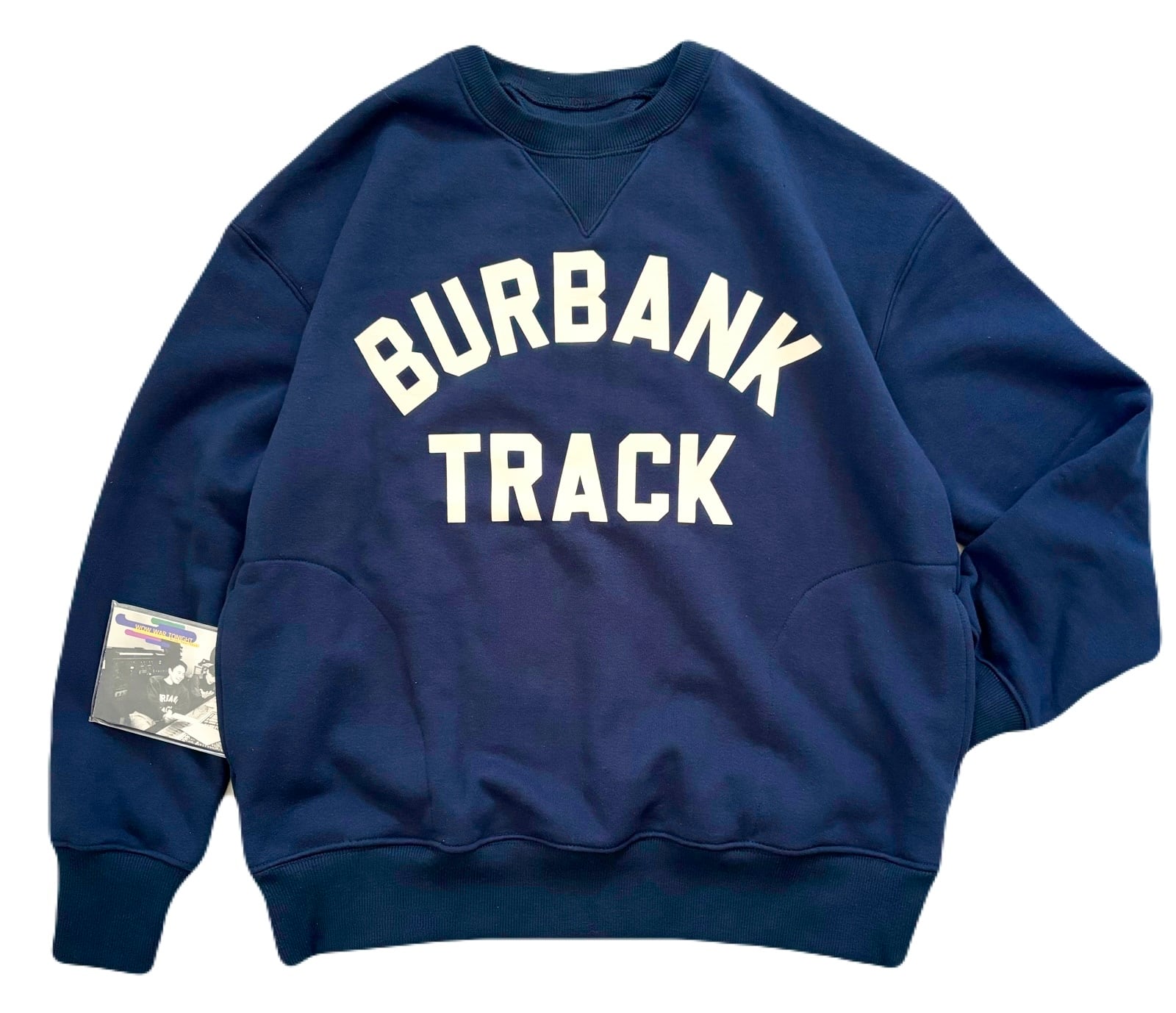 『wow war tonight』のジャケットで着用していた50、60年代のVガゼットのスウェットをモチーフに製作し、フロントには同様に「BARBANK TRACK」のラバープリントを施しました